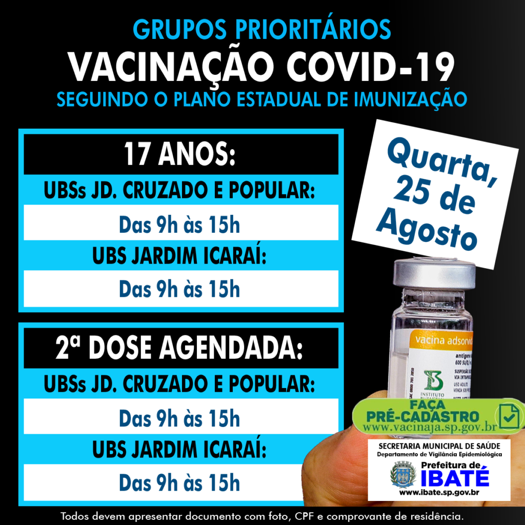 quarta-feira, dia 25 de agosto, a vacinação contra a Covid-19, dos
