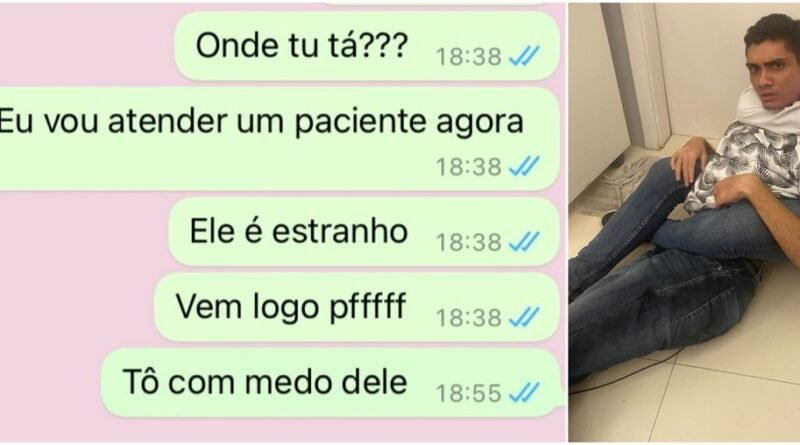“Onde tu tá? Eu vou atender um paciente agora. Ele é estranho. Vem logo pffff [por favor]. Tô com medo dele”.