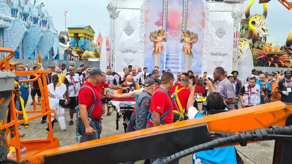 O destaque foi retirado às pressas por uma ambulância; Ele foi levado para o posto médico do sambódromo, mas estava consciente. Em seguida, o homem que não foi identificado, foi levado ao Pronto-Socorro do Hospital Santana para fazer exames.