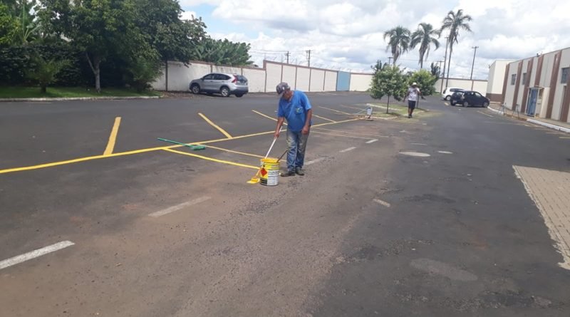 Nesta semana foi realizado limpeza de telhados e calhas, demarcações no estacionamento, reparos, serviços de jardinagem, pintura de piso e pintura de paredes e guias.