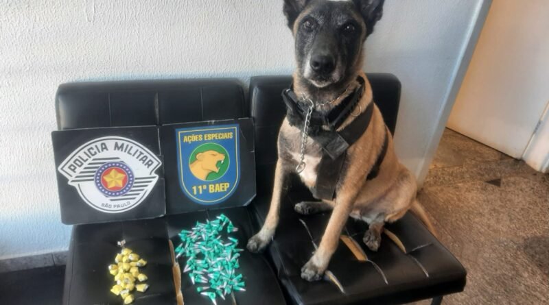 Drogas são apreendidas pelo Canil do Baep no Jardim Cruzado em Ibaté