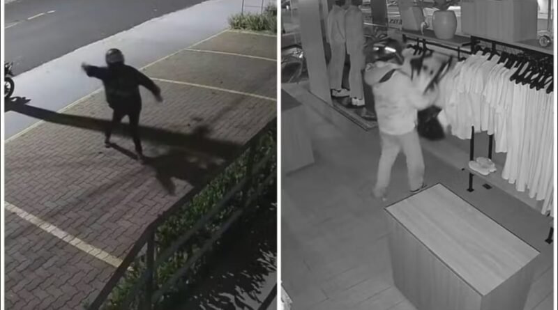 Assaltantes quebraram uma vitrine com pedras e furtaram roupas de uma loja de roupas na Vila Harmonia, em Araraquara (SP), durante a madrugada deste sábado (18). O prejuizo foi de R$ 40 mil, segundo o gerente da loja.