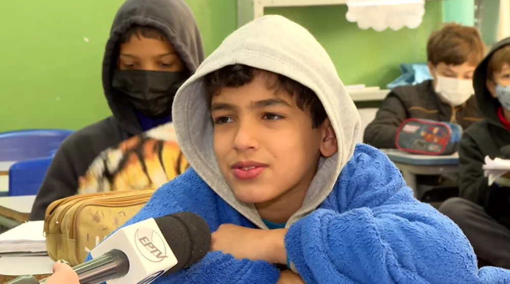 A aluna Nicole Ramos, de 11 anos, disse que se concentra melhor quando está bem aquecida. “ A gente mais quentinha é uma zona a mais de conforto nesse frio que está fazendo, eu vim com gorro cachecol, duas blusa flaneladas, calça e bota e cobertor”, contou.