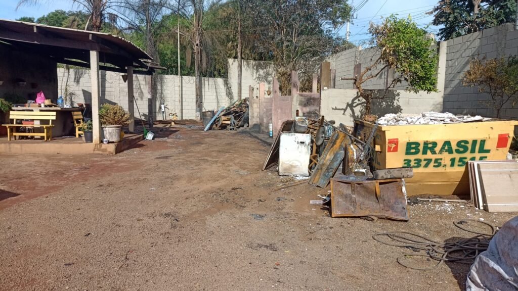 PLANO DE RECONSTRUÇÃO – A limpeza da área já foi concluída. O cronograma de obras inclui a reconstrução das baias e a reforma estrutural. Além disso, o projeto prevê a criação de uma nova baia independente, dedicada exclusivamente para abrigar a nova biblioteca comunitária, afastada da área de reciclagem.