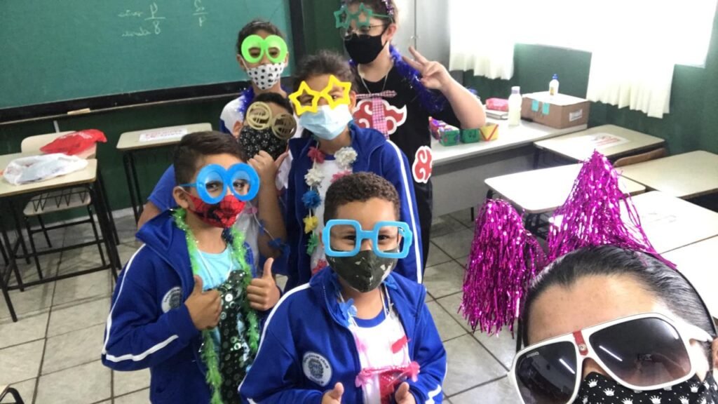 de arte, dia do cabelo maluco, onde toda equipe pedagógica fez questão