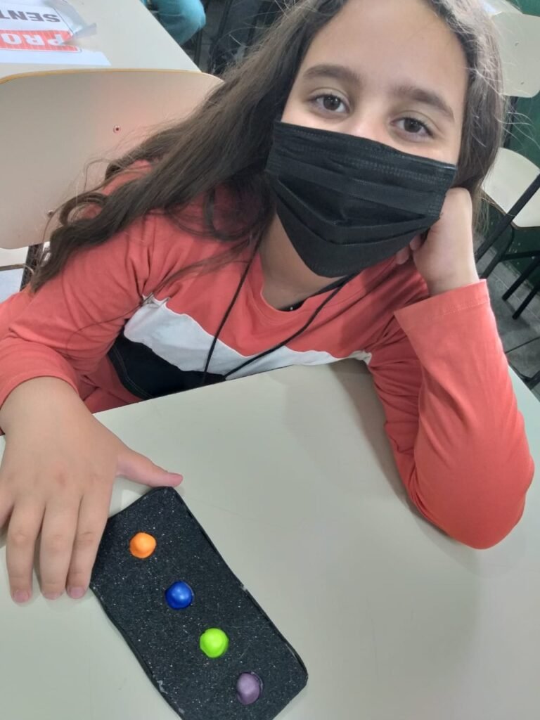 de brinquedos Pop its, instrumentos musicais junto com o professor