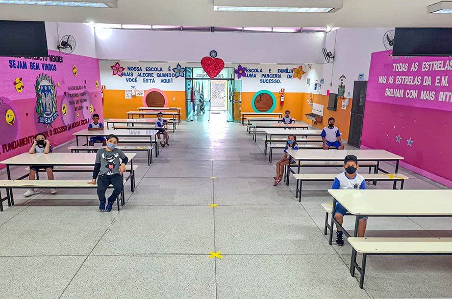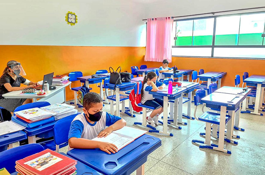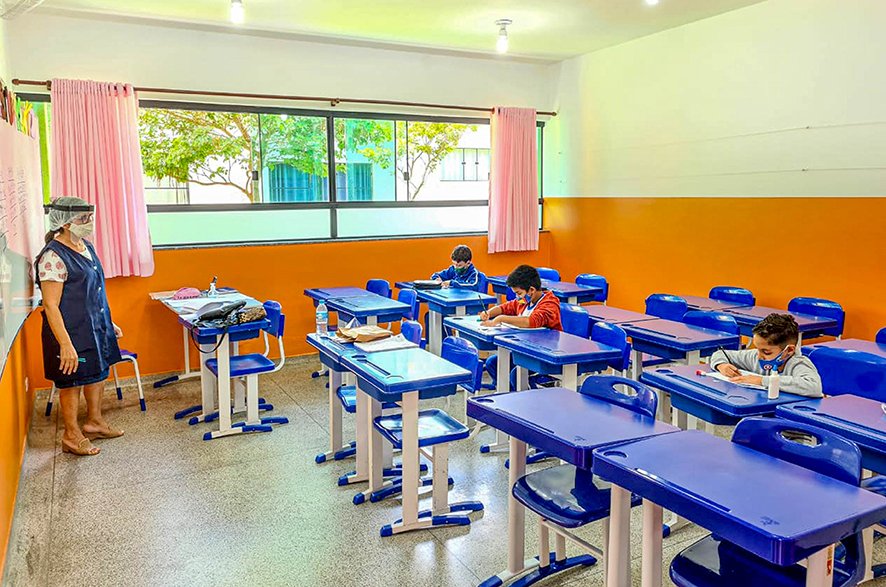 • Cumprir o distanciamento de 1,5 metro em todos os ambientes da escola, sobretudo na sala de aula;