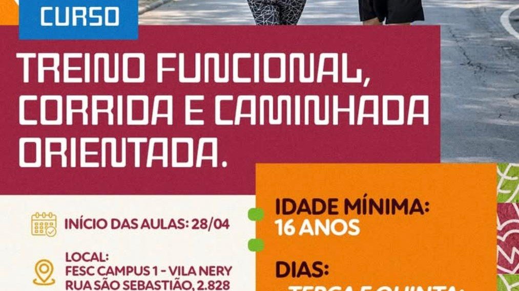 As aulas têm início no dia 28 de abril e serão realizadas no Campus 1 da FESC, localizado na Rua São Sebastião, 2.828, na Vila Nery. A proposta do curso é oferecer treinos funcionais combinados com corrida e caminhada, respeitando o nível de cada participante e incentivando hábitos saudáveis de forma segura e acompanhada.
