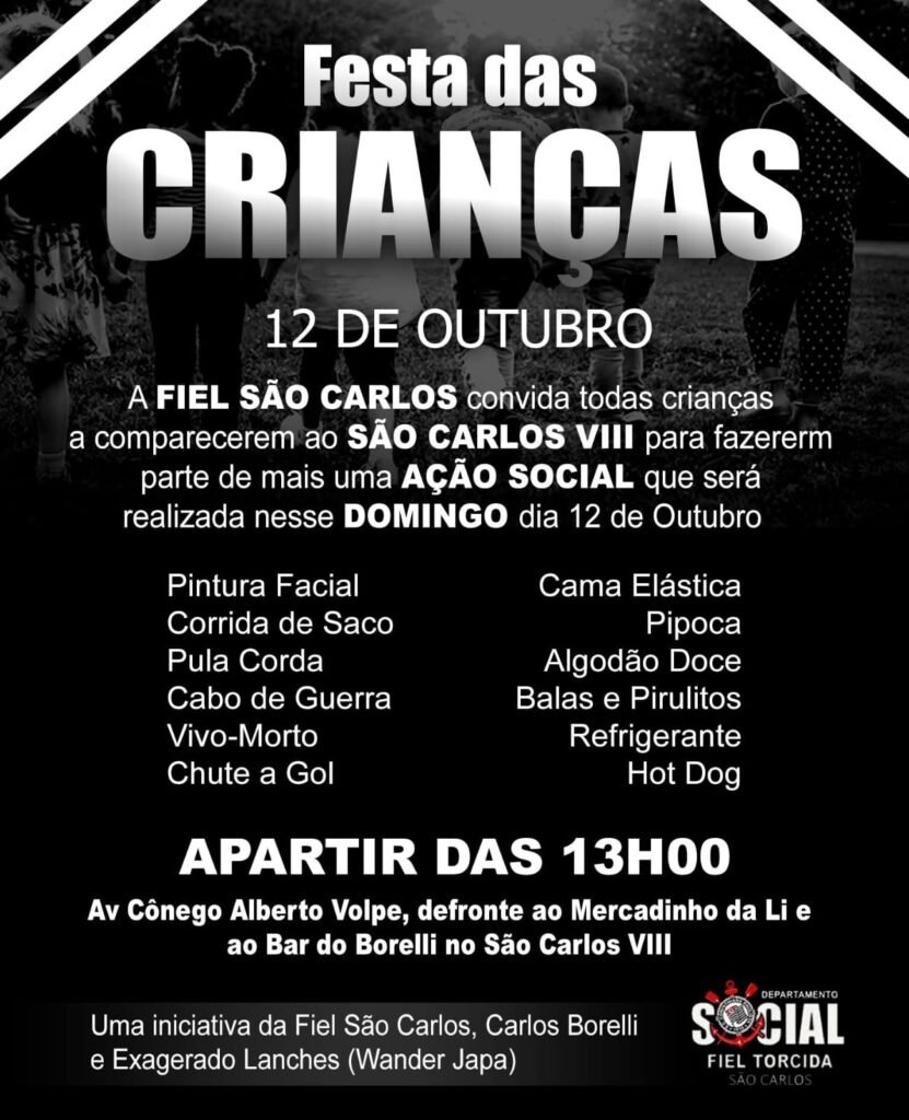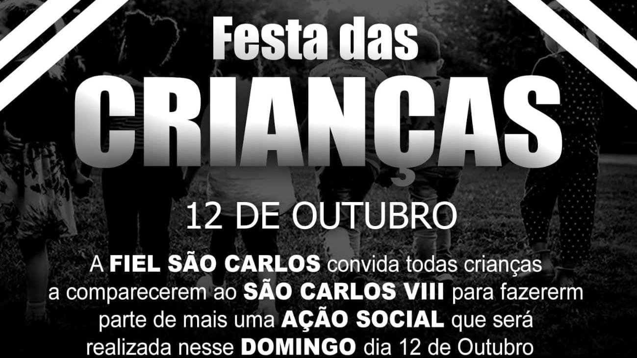 Nesse DOMINGO (12), a FIEL SÃO CARLOS (Torcida Organizada do Corinthians), promove mais uma AÇÃO SOCIAL de Dia das Crianças no bairro SÃO CARLOS VIII.
