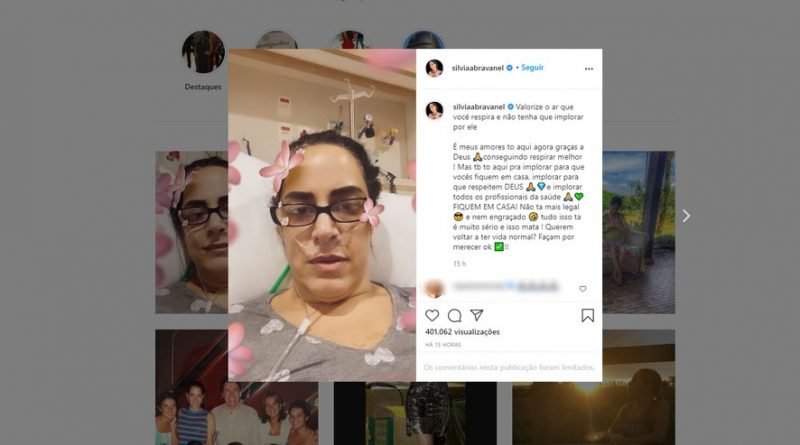 Em vídeo feito nas redes sociais, ela afirma que ficou muito debilitada e procurou atendimento hospitalar após queda na saturação de oxigênio. Na postagem, ela ainda pede aos seguidores que fiquem em casa.