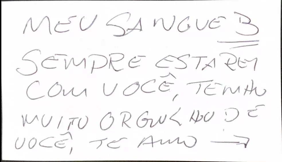 “Eu decidi tatuar esse bilhete na última segunda-feira, mas eu já ia fazer algumas outras tatuagens que eu e a minha mãe passamos com ele”. Uma delas é esse bilhete que o pai da jovem lhe deixou como presente: “Meu sangue B, sempre estarei com você, tenho muito orgulho de você, te amo”.