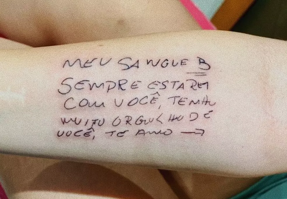 “Eu decidi tatuar esse bilhete na última segunda-feira, mas eu já ia fazer algumas outras tatuagens que eu e a minha mãe passamos com ele”. Uma delas é esse bilhete que o pai da jovem lhe deixou como presente: “Meu sangue B, sempre estarei com você, tenho muito orgulho de você, te amo”.