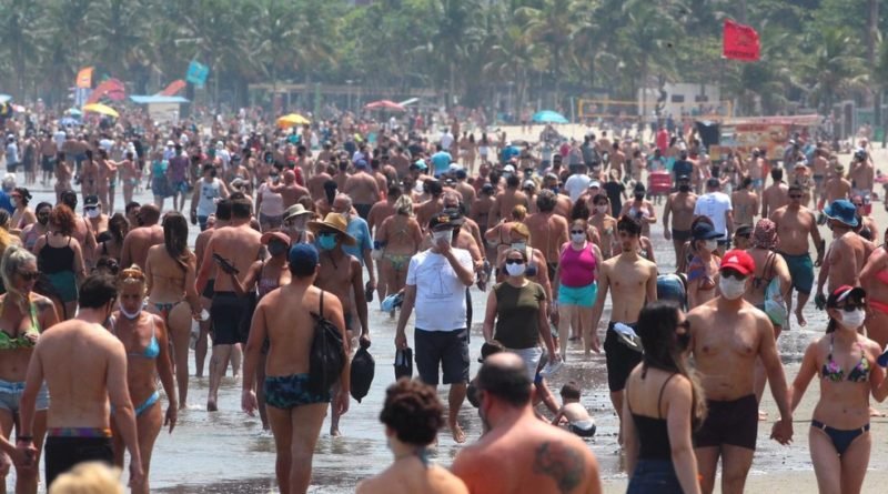 Centenas de banhistas lotaram as praias da Baixada Santista, no litoral de São Paulo, aproveitando o dia ensolarado neste domingo (27). As praias parcialmente liberadas atraíram turistas e moradores, praias como Santos e Praia Grande, é possível observar que alguns ainda desrespeitam o uso obrigatório de máscaras e decretos municipais para enfrentamento da pandemia da Covid-19.