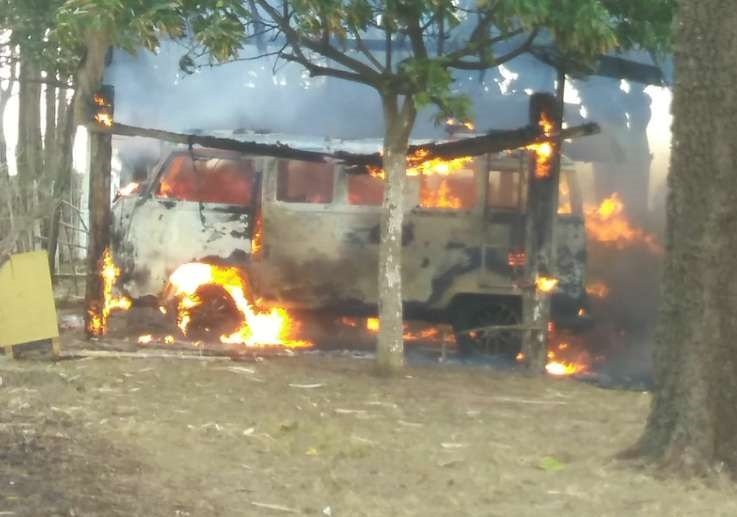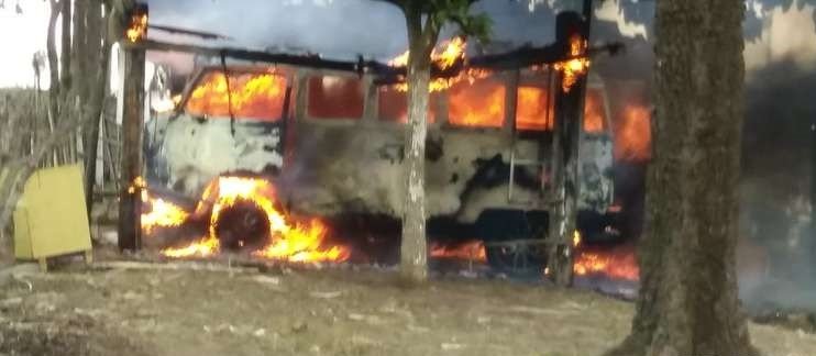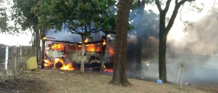 Fogo destrói Kombi de garapeiro na Washington Luis em Ibaté