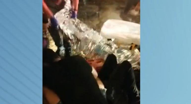Para conter a situação, uma pessoa deu um golpe de mata-leão no homem alterado. Após se acalmar, ele pagou sua conta e disse que iria embora, mas passou a ameaçar os funcionários do local.