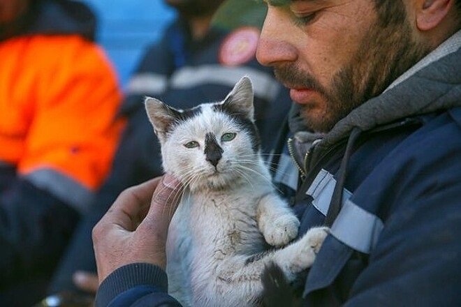 O gato de pelagem branca e manchas pretas (que devido à poeira dos destroços está cinza) ficou grato por ter sido salvo e agora ele não sai de perto da equipe de resgate. Principalmente do bombeiro que o salvou, Ali Çakas. Em um vídeo que circula a internet é possível vê-lo nos ombros do seu salvador.