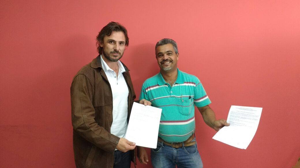 Presidente Steigue Faccio e Alceu, Proprietário da empresa Só Piscinas, contrato fechado.