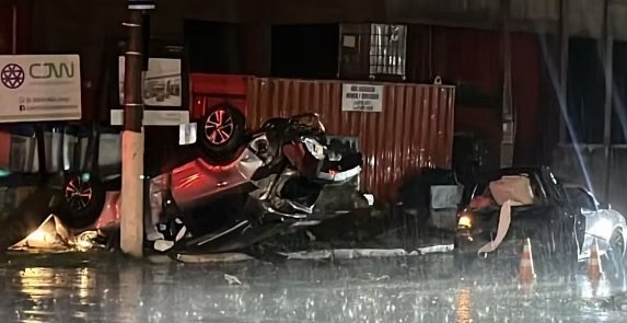Segundo a Polícia Militar, por volta de 21h45, o motorista de um Gol capotou após o condutor sofrer um mal súbito na Avenida Berta Burhein. Em seguida, o veículo colidiu contra outros dois carros.
