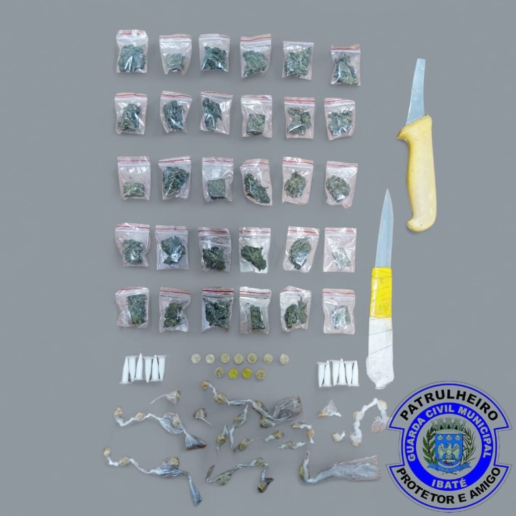 Além dos entorpecentes, duas facas foram localizadas nas proximidades.