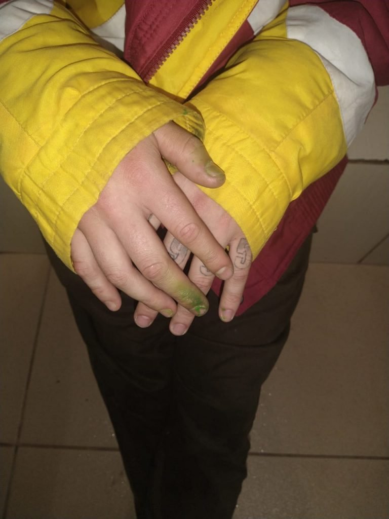 Abordado, a equipe constatou que o mesmo estava com as mãos tingidas da cor utilizada na pichação e estava em posse de um spray, que tentou dispensar quando notou que seria abordado.