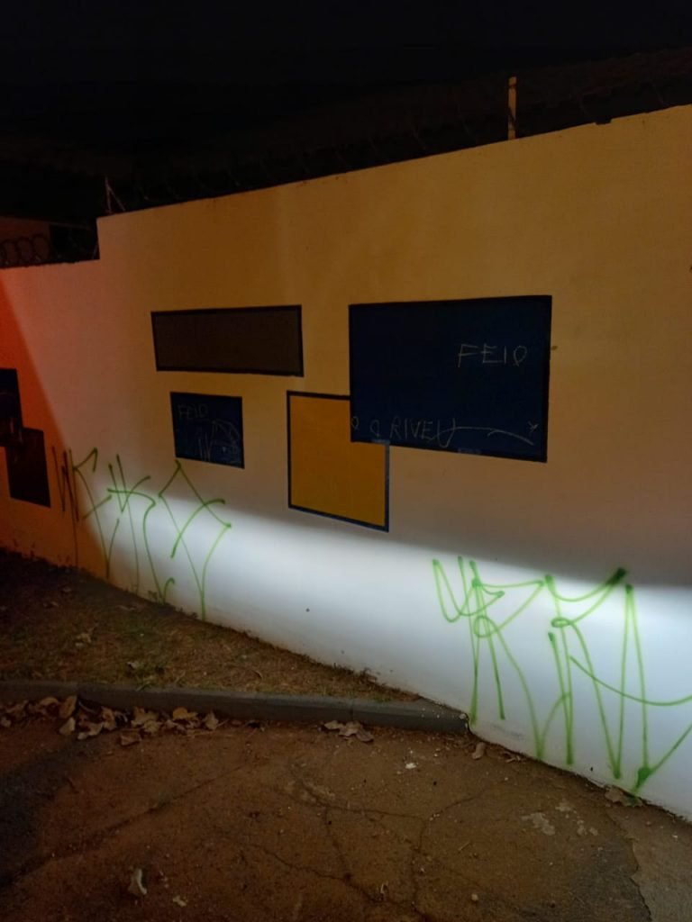 Por volta das 2h do último dia dia 09/07, os GCMs em patrulhamento no bairro jardim popular, a equipe deparou-se com uma pichação que acabara de ser feita no muro da escola Ermínia Morganti.