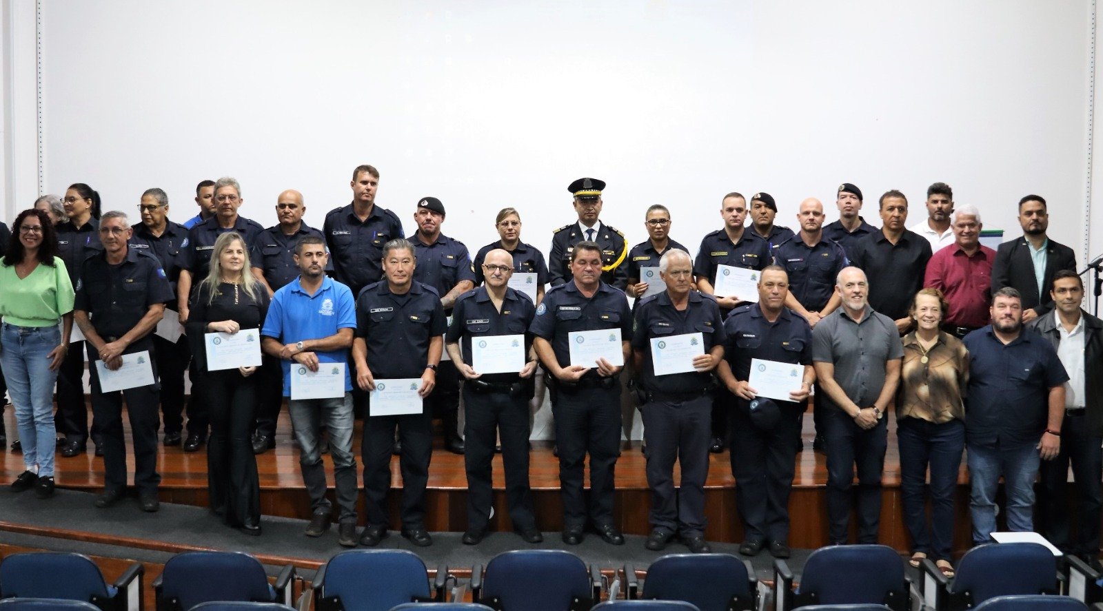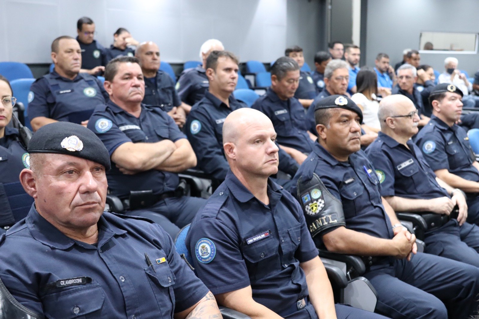 A solenidade contou com a presença dos vereadores André Rebello, Fábio Zanchin, Moisés Lazarine e Professora Neusa, Tenente Rogério, representando o Tenente Coronel Mussolini, comandante do 38º BPMI, Sargento Edson Roberto Polli, Instrutor do Tiro de Guerra, Marcos Cutieri, chefe da equipe da Polícia Científica, Capitão Rangel Gregório, comandante do Corpo de Bombeiros, além de secretários municipais e familiares dos Guarda Municipais homenageados.