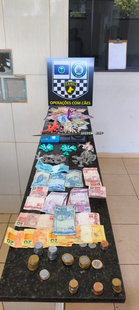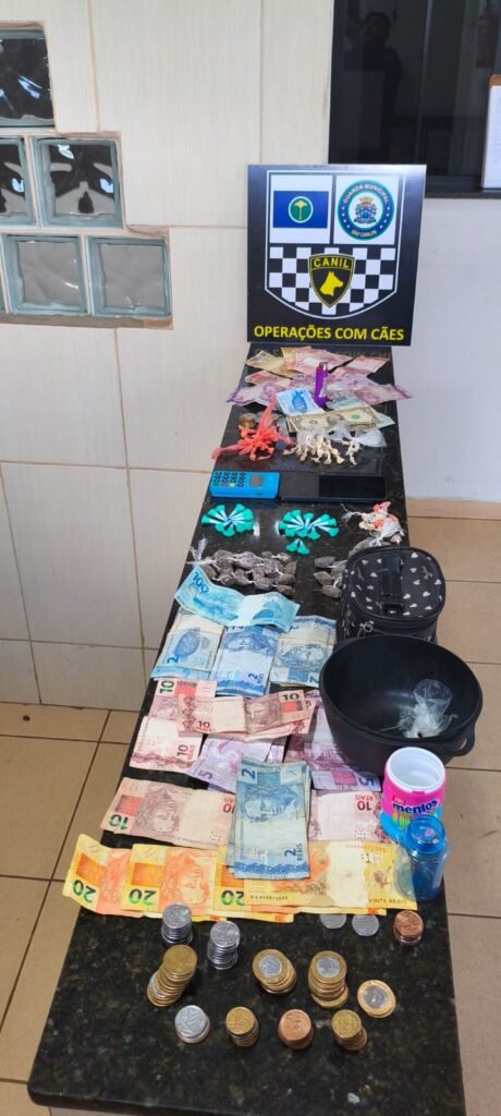 Com o suspeito, identificado como W.M.M., foram encontradas pedras de crack e dinheiro. Dentro do imóvel, os guardas localizaram H.G.S.C., que estava dormindo em um dos quartos. No local, os agentes encontraram grande quantidade de drogas e objetos utilizados para a prática criminosa: