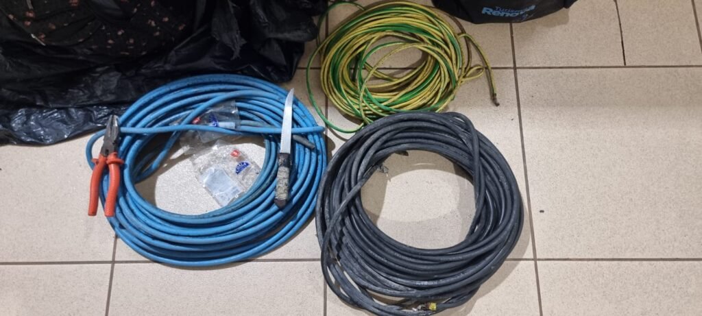 Durante a abordagem, os guardas encontraram no interior dos sacos uma grande quantidade de fios de cobre, além de um alicate e uma faca que seriam utilizados para a prática do crime.