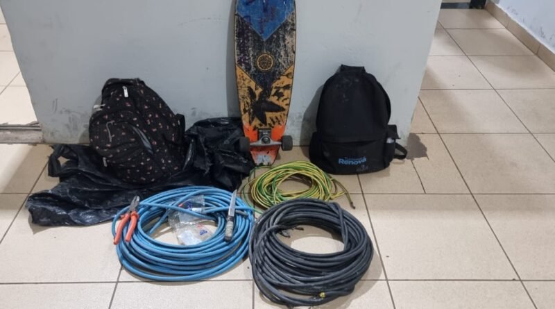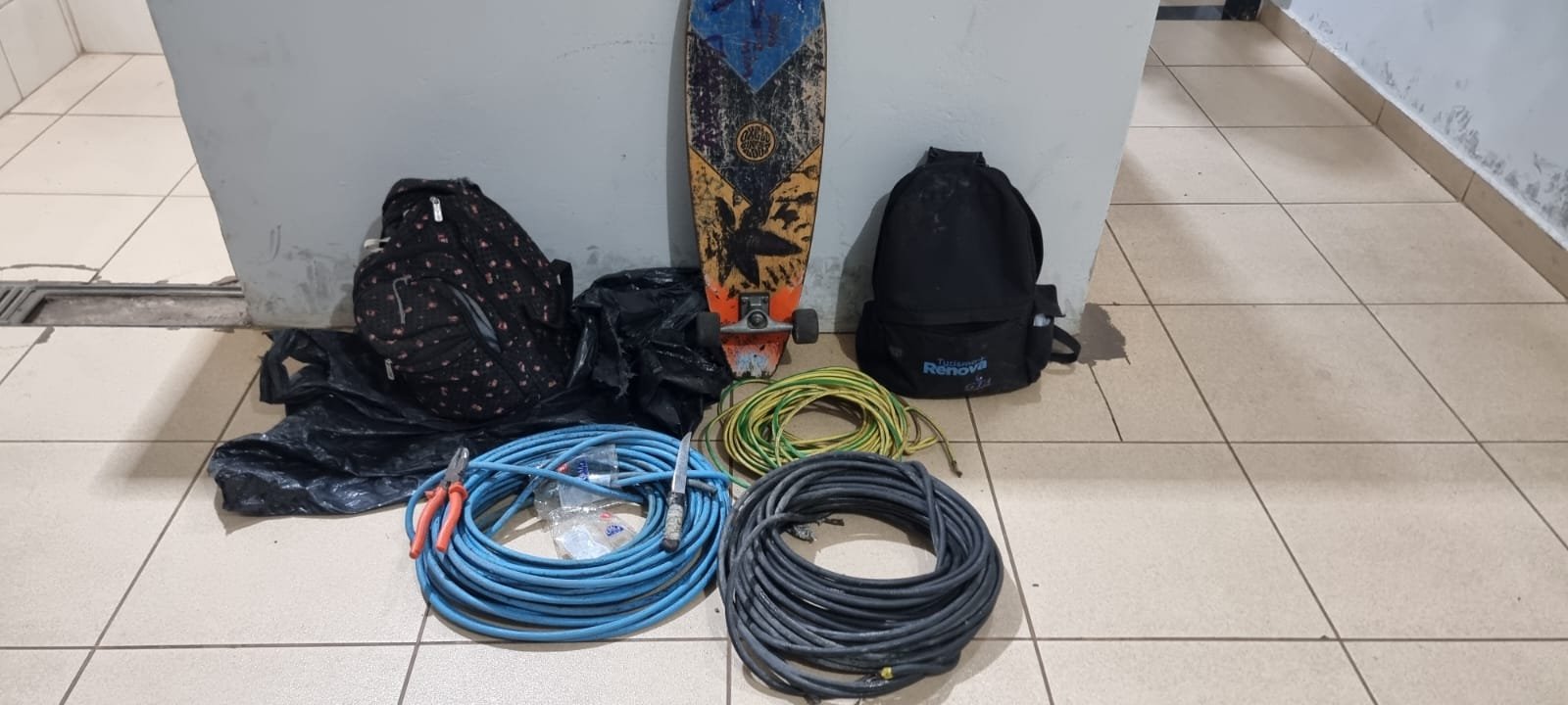 Durante a abordagem, os guardas encontraram no interior dos sacos uma grande quantidade de fios de cobre, além de um alicate e uma faca que seriam utilizados para a prática do crime.