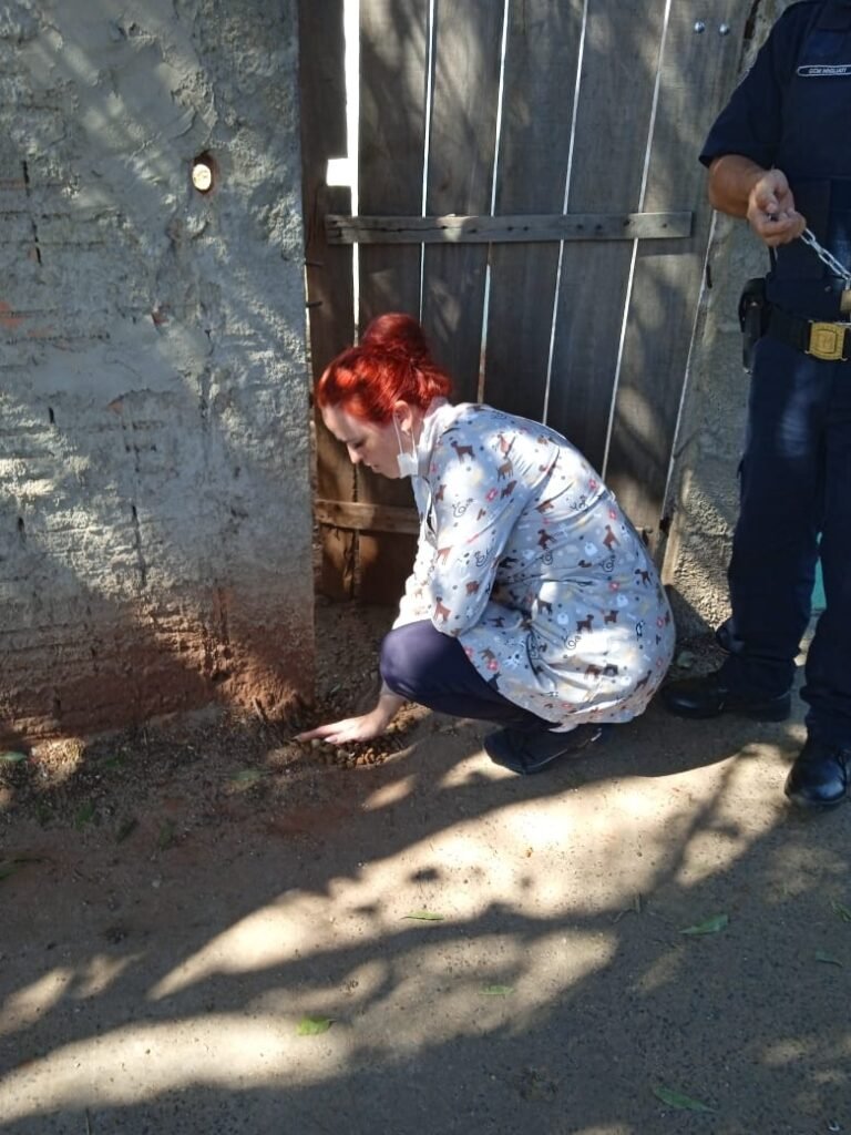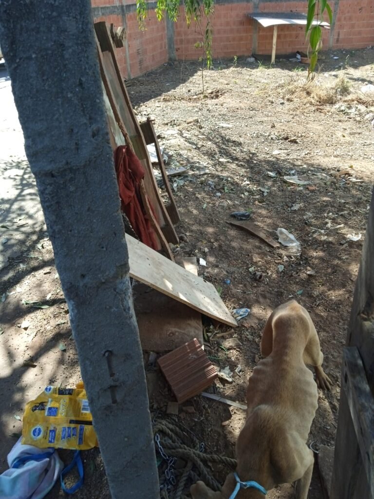 Segundo informações trata-se de um terreno o qual foi invadido, o responsável pelos animais não se encontrava e segundo voluntárias da ONG Amar É O Bicho e o Centro de Zoonoses da cidade, a fêmea apresentava sofrer maus tratos por estar muito magra, além do local ser inadequado para o animal.