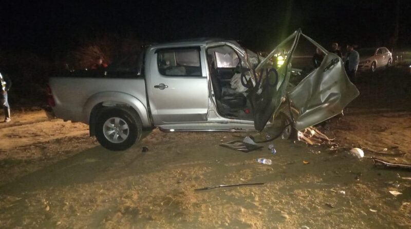 Hillux colide em caminhão e casal fica ferido