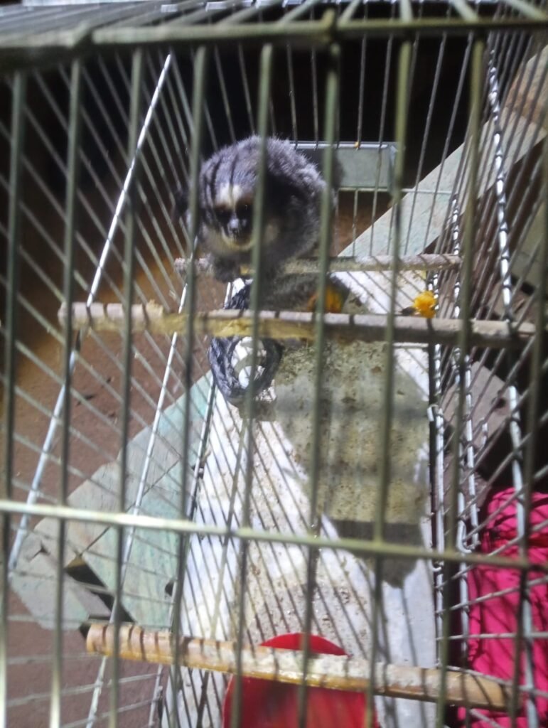 Os GMs ao chegarem no local, tiveram a informação do morador de que o animal apareceu em seu quintal eles o capturaram , colocando em uma gaiola e que iria ver nos órgãos competentes o que poderia fazer para criar o animal, foi negado a atitude de venda do macaco.