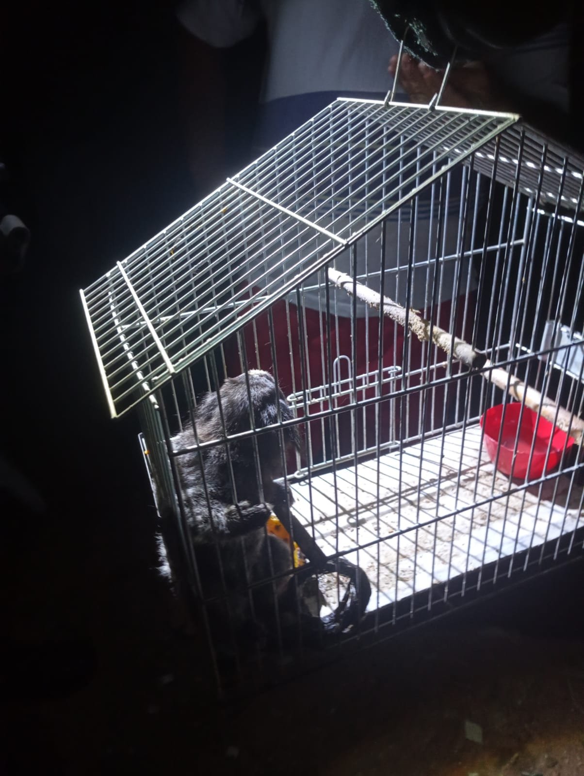 Os GMs ao chegarem no local, tiveram a informação do morador de que o animal apareceu em seu quintal eles o capturaram , colocando em uma gaiola e que iria ver nos órgãos competentes o que poderia fazer para criar o animal, foi negado a atitude de venda do macaco.