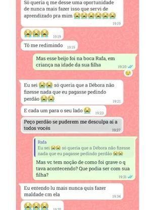 Após ter sido acusado, o suspeito mandou um áudio em que dizia que não tinha beijado a menina na boca. “Do jeito que tá no vídeo, ela põe a almofada no rosto. Eu vou dar um beijo na testa dela, só que ela se espreme e acaba pegando no nariz dela, entre a boca e o nariz”, explicou.