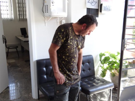 Rapidamente, a viatura dos policiais militares Cabo Falaci e Cabo Fernando Cezar chegou ao local e conseguiu prender Leandro em flagrante.