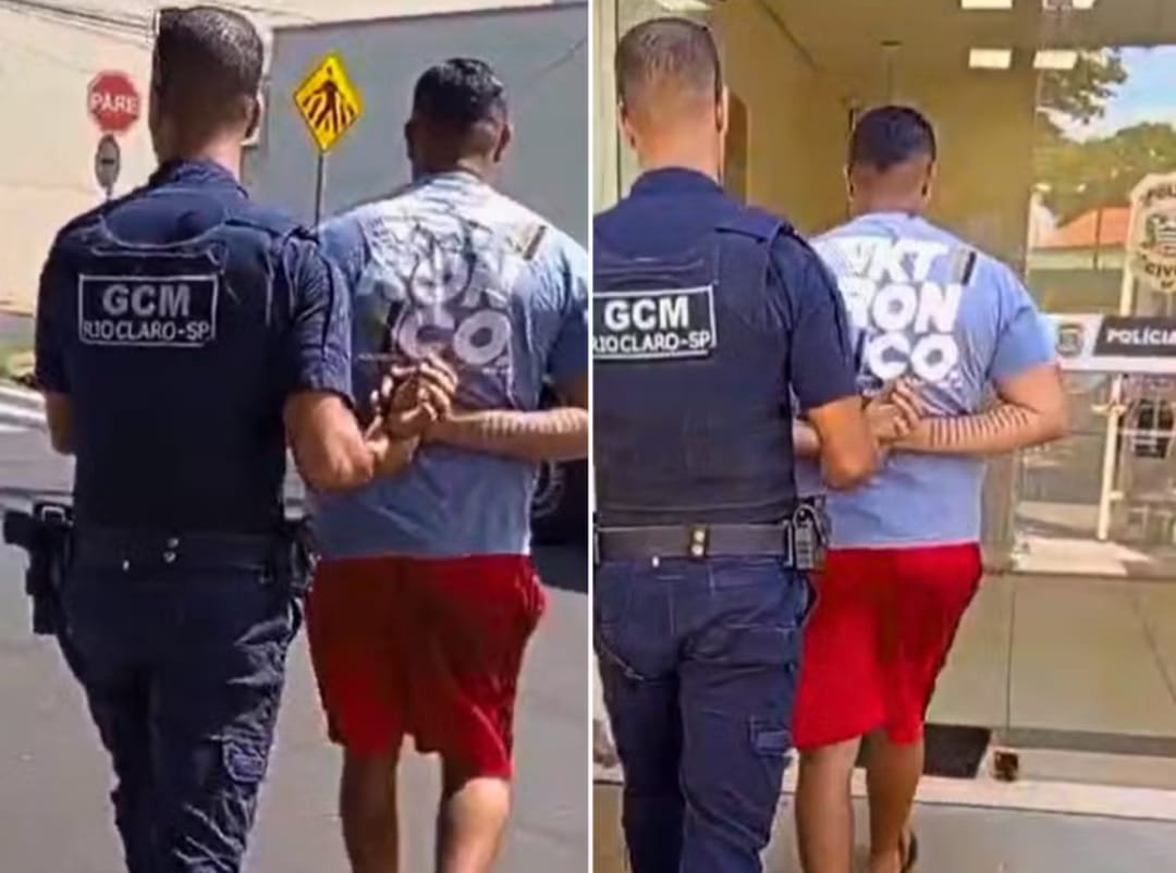 Um homem de 30 anos foi preso por importunação sexual após mostrar o pênis para uma mulher, de 40, na rua em Rio Claro (SP). O suspeito possui antecedentes criminais pelo mesmo crime. Imagens obtidas pelo g1 mostram o momento da prisão dele.