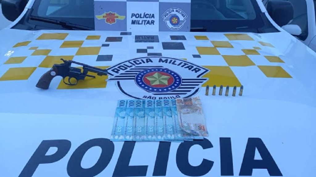 No veículo, foram encontradas cédulas falsas (R$ 750) e um revólver calibre 38 municiado com seis munições intactas.