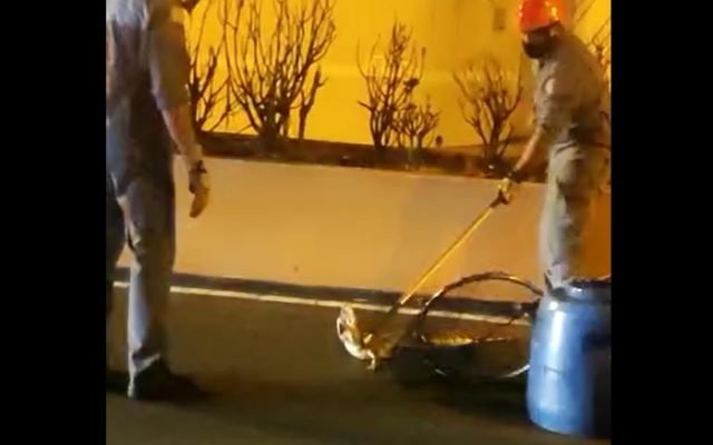 Os homens do Corpo de Bombeiros conseguiram fazer a captura e ele foi levado para o Parque Ecológico de São Carlos, onde vai passar pela avaliação com veterinários.