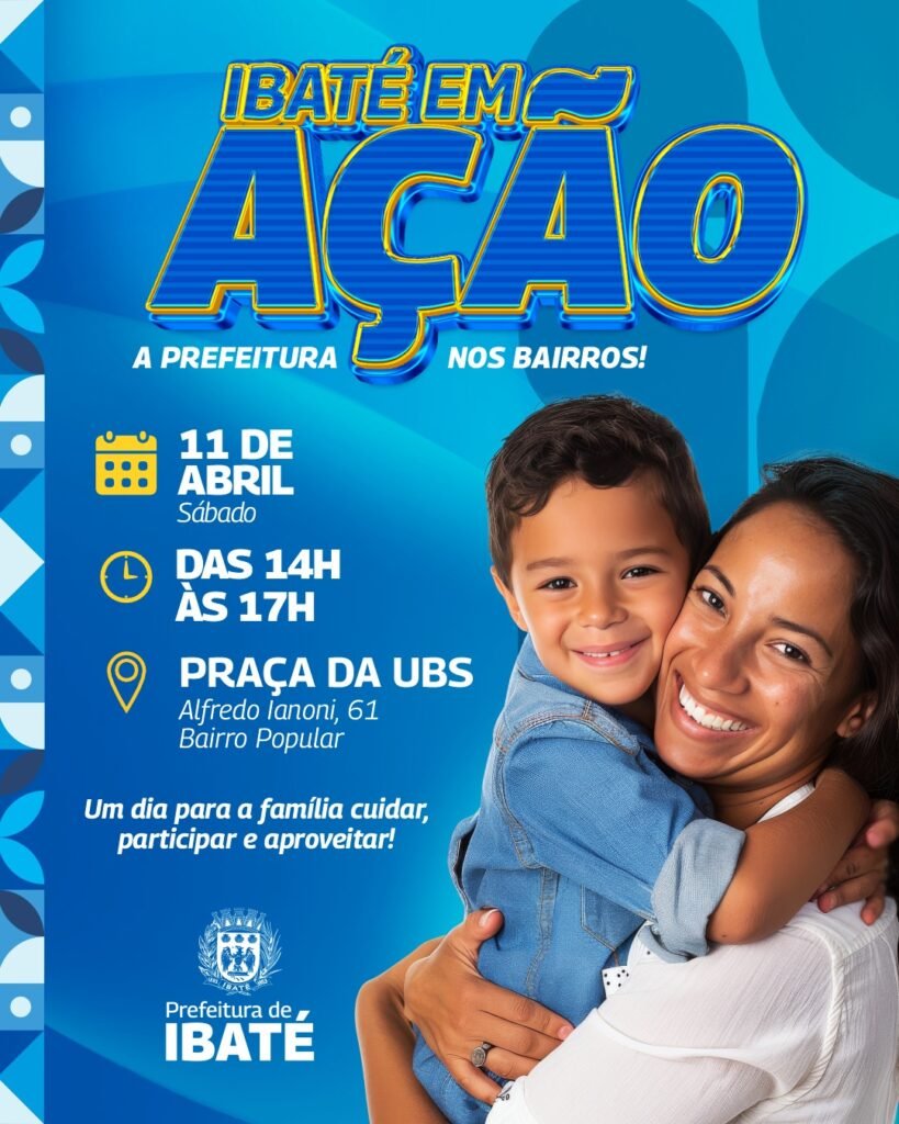 A Prefeitura de Ibaté realizará neste sábado dia 11 de abril, das 14h às 17h, mais uma edição do Ibaté em Ação, um dia especial com diversos serviços, atividades e lazer.
