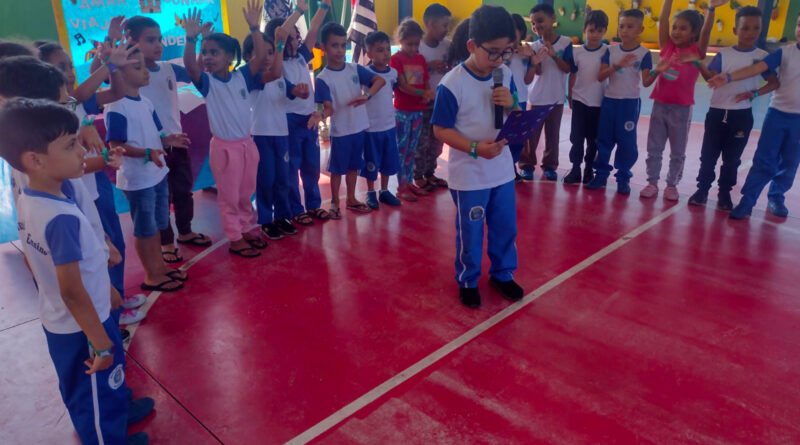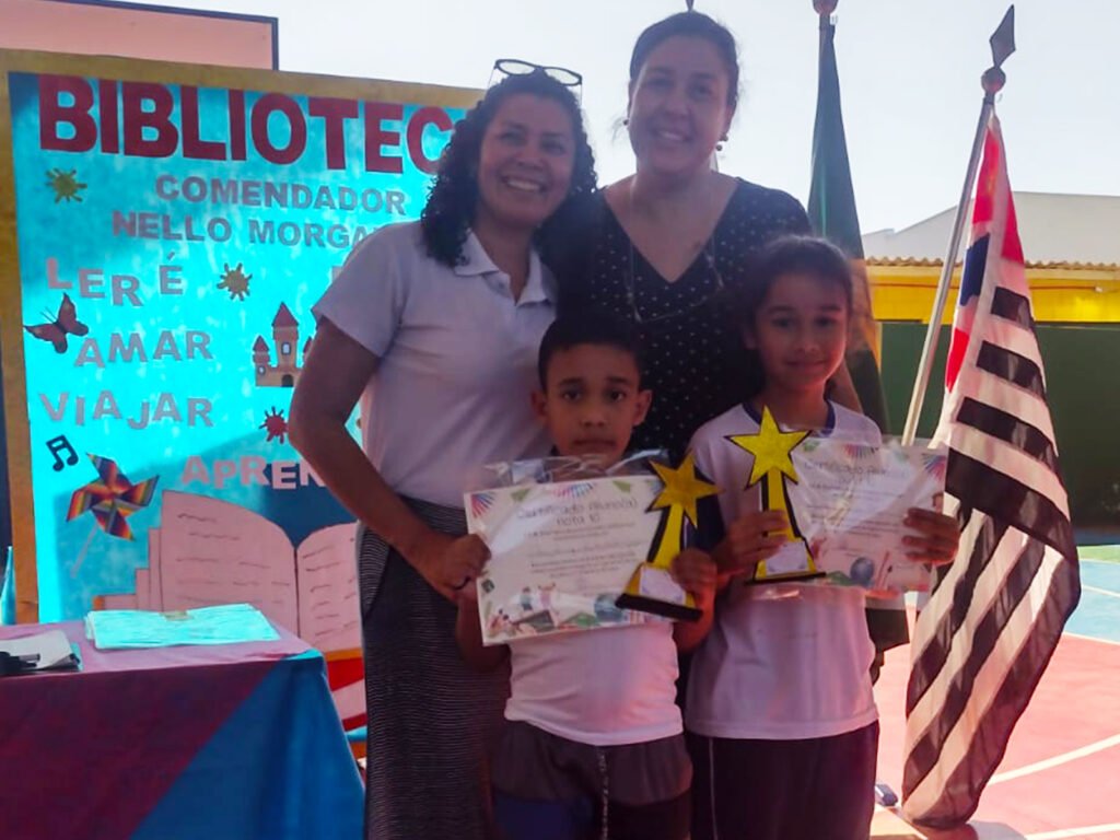 A Equipe da EM Profª Alice Rossito Cervoni realizou uma cerimônia homenageando os alunos nota 10 do 2º bimestre. Para ilustrar a ocasião, alguns alunos de cada turma fizeram uma leitura para os ilustres colegas ganhadores do prêmio.