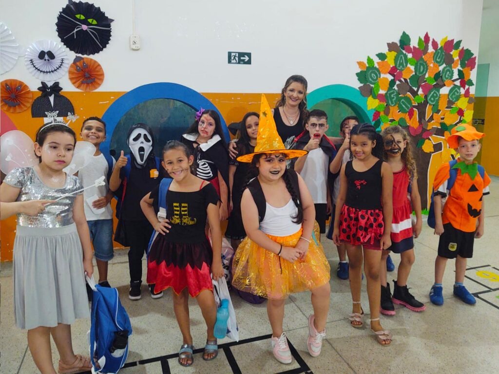 Na ocasião, foi proporcionado aos alunos a passagem pelo túnel de acesso à casa da bruxa, contação de histórias, pintura facial, desfile de fantasias, jogos temáticos, entre outras brincadeiras.