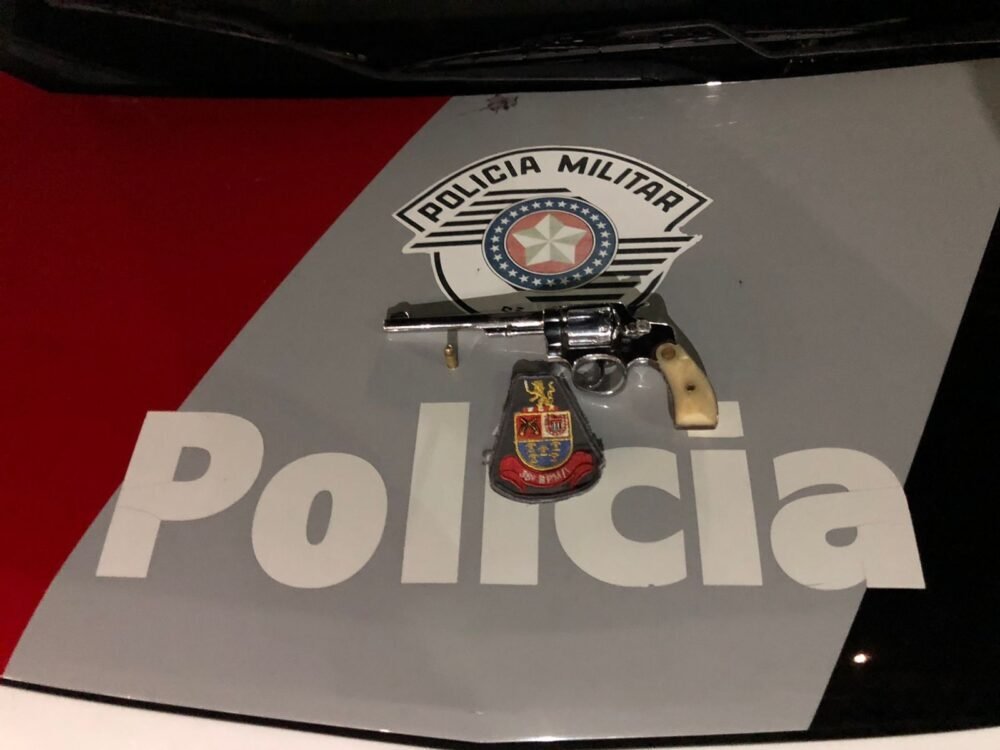 Os policiais realizaram a abordagem e durante revista pessoal foi encontrado em sua cintura um revólver calibre 32 municiado com uma munição.
