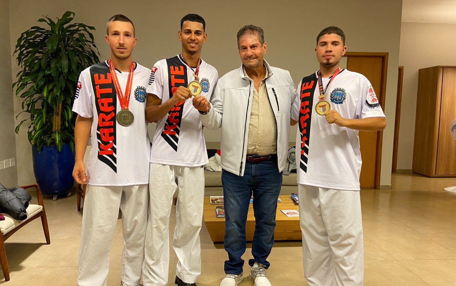 Nesta quinta-feira (15) atletas do Projeto Social de Karatê de Ibaté visitaram o gabinete do prefeito municipal, José Luiz Parella.