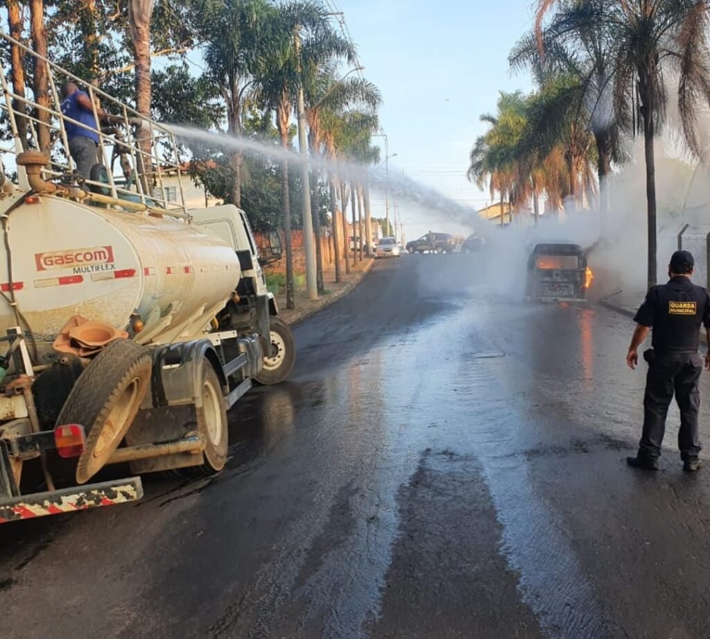 Chegando no local os GCMs isolaram a área , e solicitaram o Sr. Gerivaldo responsável pelo caminhão pipa do DAAE, que prontamente foi até o local e controlou as chamas.