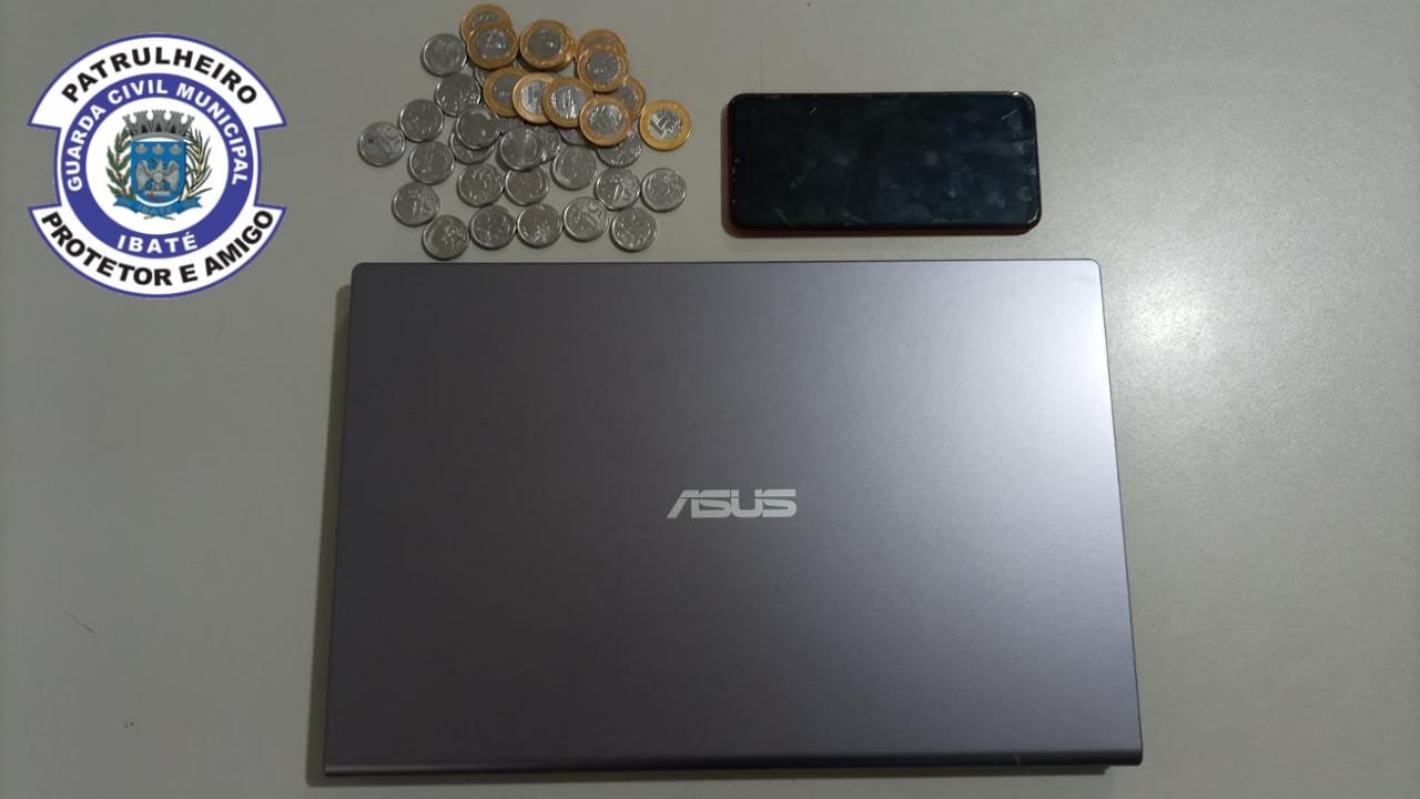 Após tomar conhecimento do fato, a Guarda Municipal agiu rápido, os GCMS lograram êxito ao localizar o acusado próximo a passarela , as margens da Rodovia Washington Luís, o homem foi abordado e com ele foi localizado o notebook e celular produtos do roubo e as moedas.
