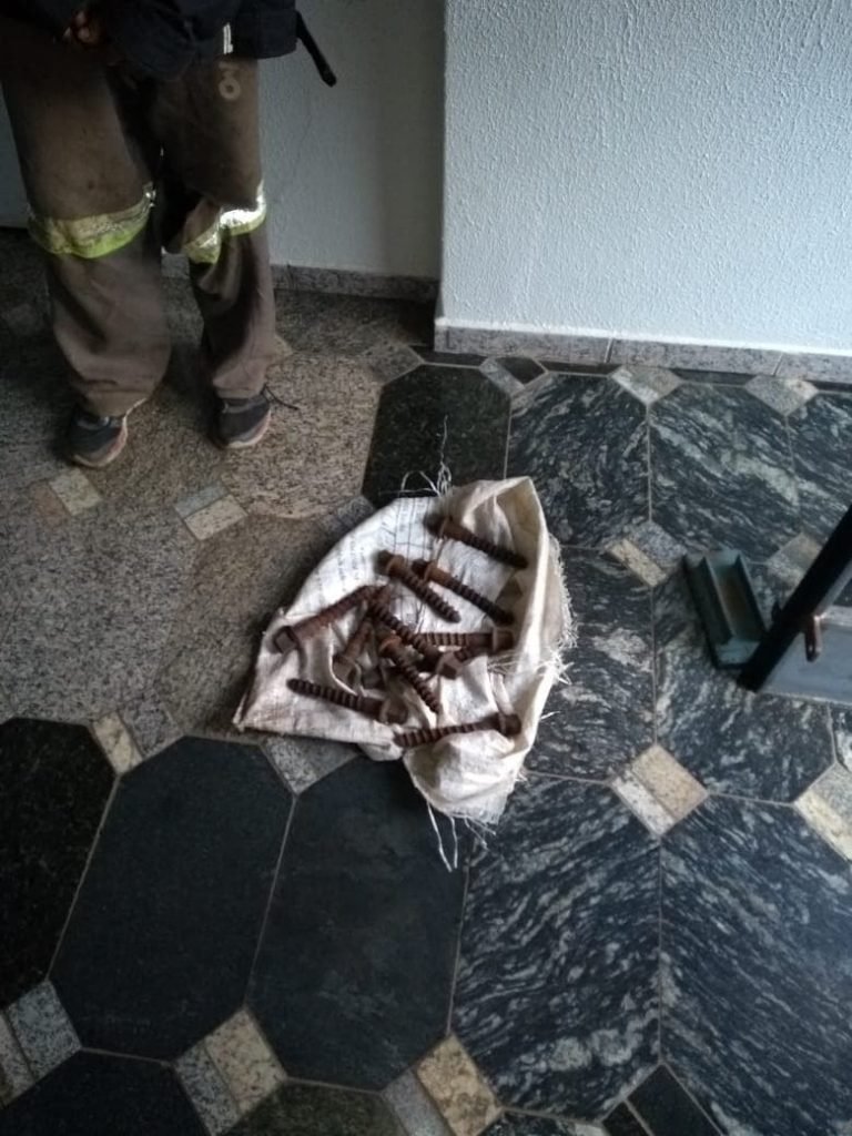 Após denúncia de que um homem estava em atitude suspeita com um saco nas costas, os Guardas municipais foram atender ao chamado, chegando no local foi feita a abordagem e o acusado confessou a prática do furto e disse que iria revender os parafusos posteriormente.