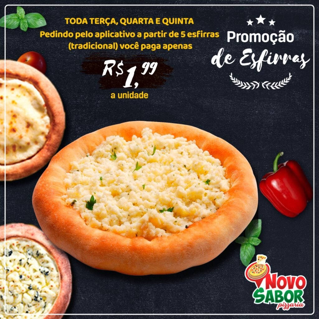 O melhor sabor e qualidade em Pizzas e Esfirras você encontra na Pizzaria Novo Sabor.