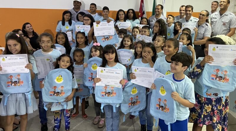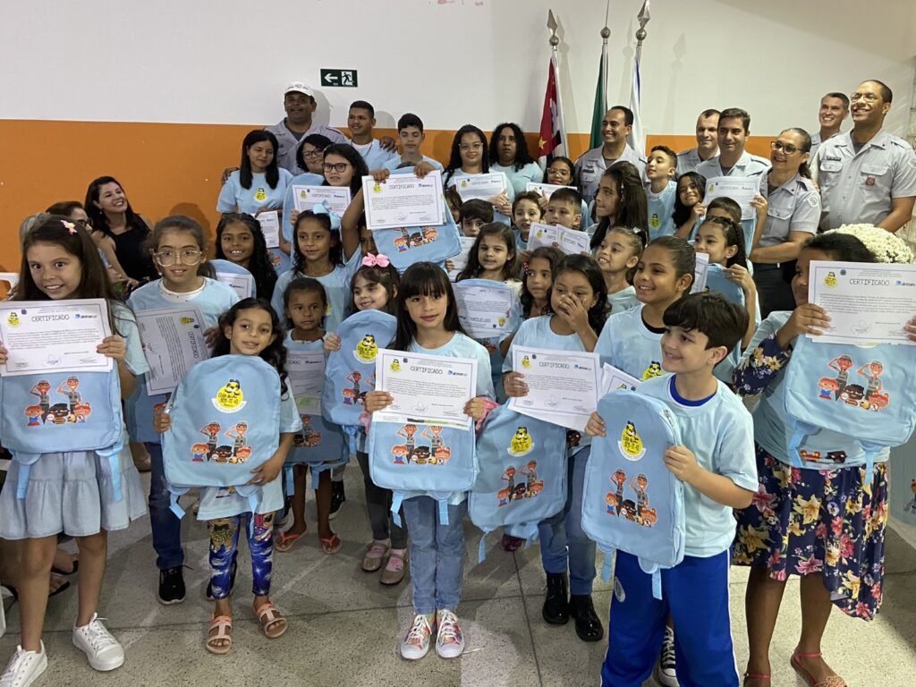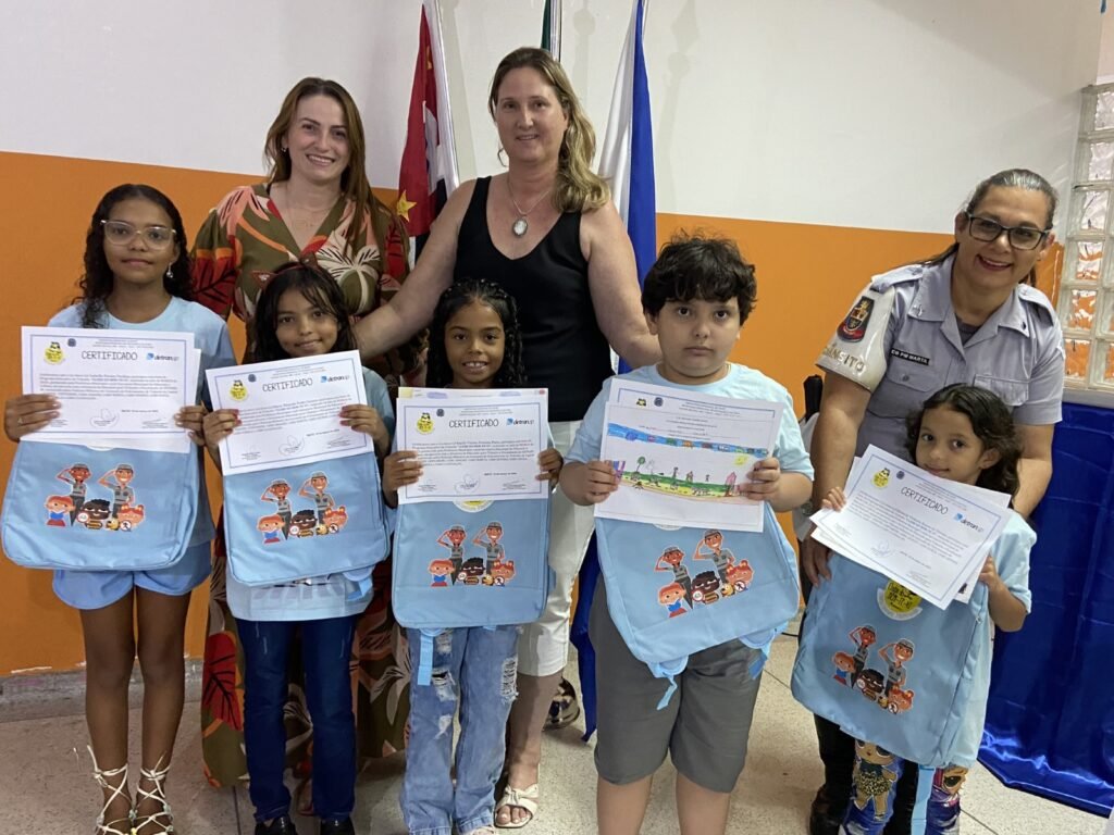 Durante a solenidade, os alunos ganhadores do concurso de melhor desenho de cada escola, receberam uma mochila, uma camiseta e um certificado como premiação pela participação no programa.