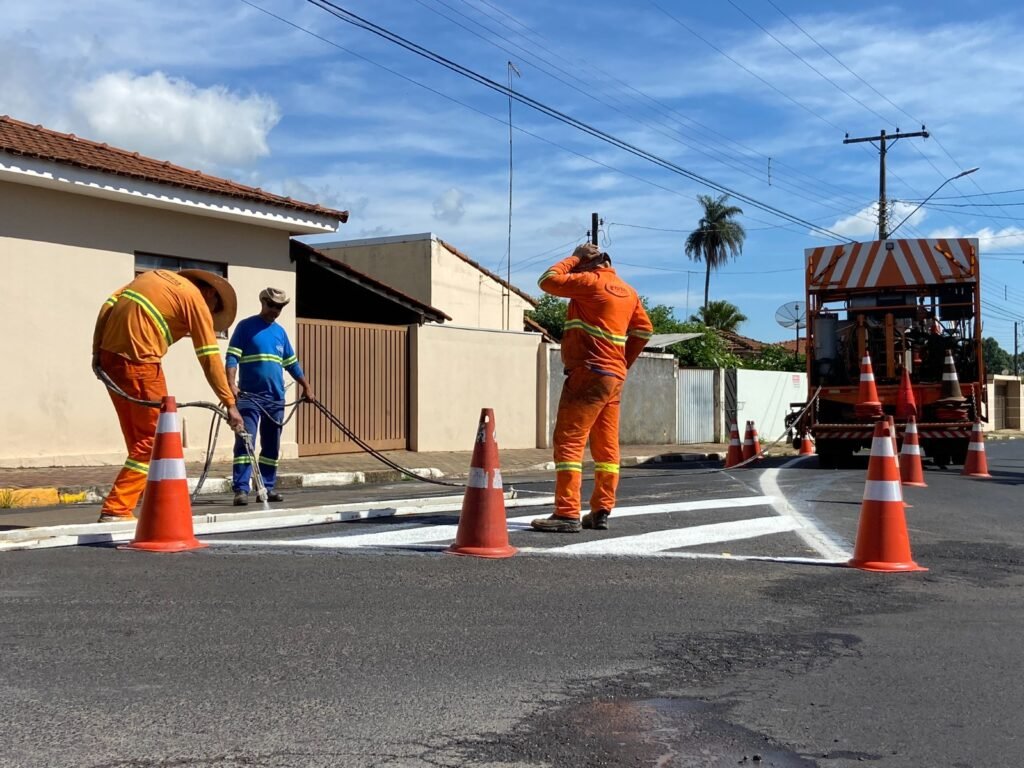 O trabalho, que vem sendo executado por empresa terceirizada, vencedora do processo licitatório, com a supervisão da Secretaria Municipal de Obras, consiste na aplicação de tinta específica acrescida de microesferas de vidro, tornando a sinalização refletiva para orientação noturna dos motoristas.