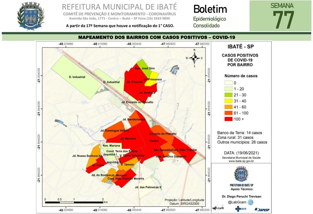 período de 13 a 19 de junho, Ibaté registrou 132 casos confirmados de